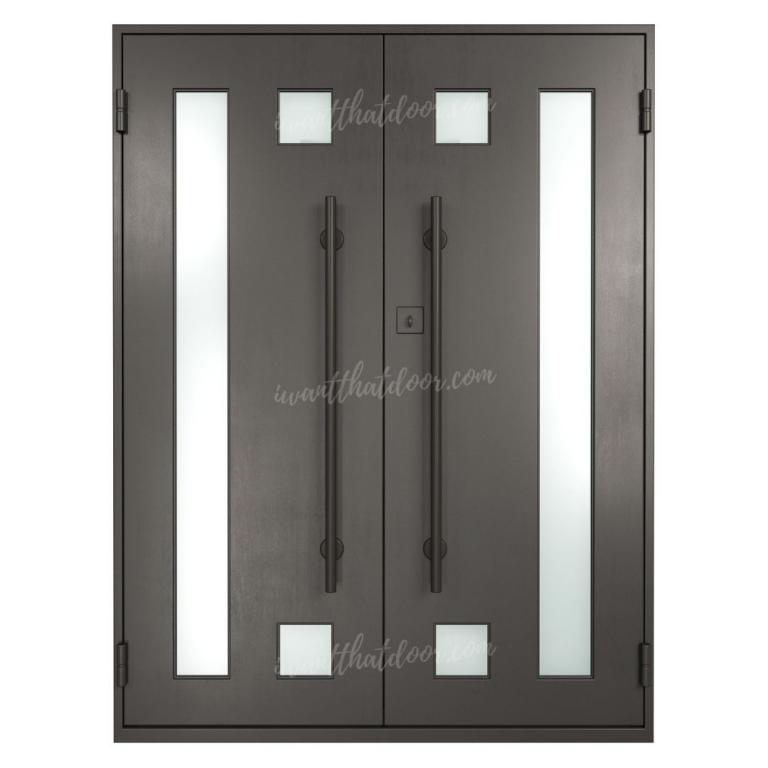 | TOLEDO LH WROUGHT IRON Style 61 X 81 LEFT HAND INSWING FLAT BLACK Color SANDBLAST Glass STEEL Material PULL HANDLE #038 SQUARE DEADBOLT DOUBLE SQUARE TOP Modern, Contemporary, Art Deco Style Residential, Commercial (Pull Handles and Locks are price separately) | |