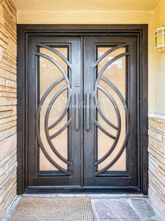 | LITITZ LH Wrought Iron Door 61 X 81 LEFT HAND INSWING FLAT BLACK Color SANDBLAST Glass STEEL Material PULL HANDLE #006 SQUARE DEADBOLT DOUBLE SQUARE TOP Modern, Contemporary, Art Deco Style Residential, Commercial (Pull Handles and Locks are price separately) | |