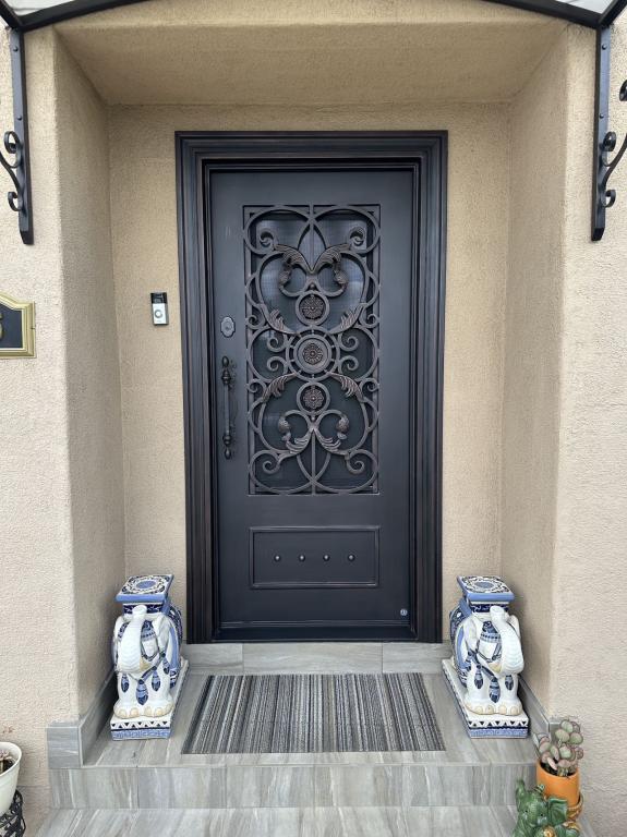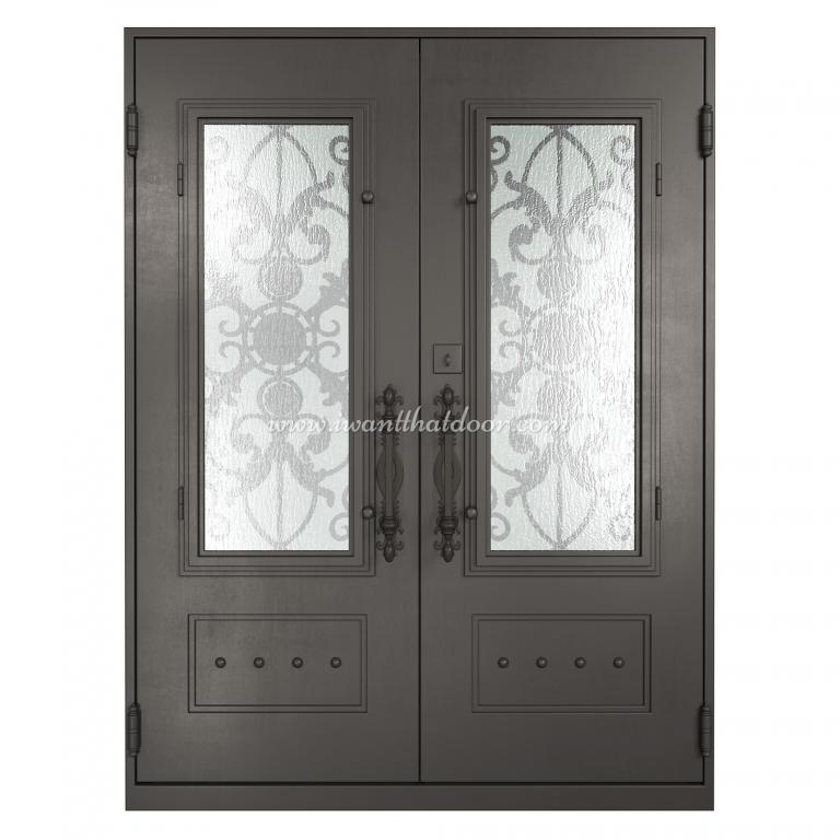 | CHANIA LH WROUGHT IRON Style 61 X 81 LEFT HAND INSWING MEDIUM COPPER Color SANDBLAST Glass STEEL Material PULL HANDLE #020 VITO - D107 - BL - S - DOUBLE SQUARE TOP Modern, Contemporary, Art Deco Style Residential, Commercial (Pull Handles and Locks are price separately) | |