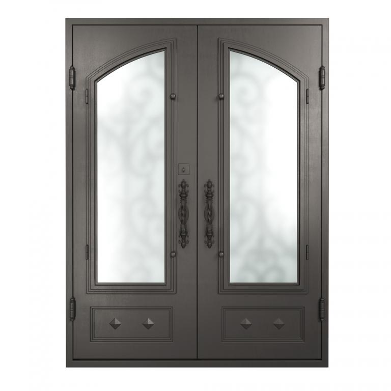 | VATICAN SQUARE TOP WITH EYEBROW GLASSES RH Wrought Iron Door 61 X 81 RIGHT HAND INSWING MEDIUM COPPER Color SANDBLAST Glass STEEL Material PULL HANDLE #019 SQUARE DEADBOLT DOUBLE SQUARE TOP Mediterranean, Spanish, Italianate, Religious Style Residential, Commercial (Pull Handles and Locks are price separately) | |
