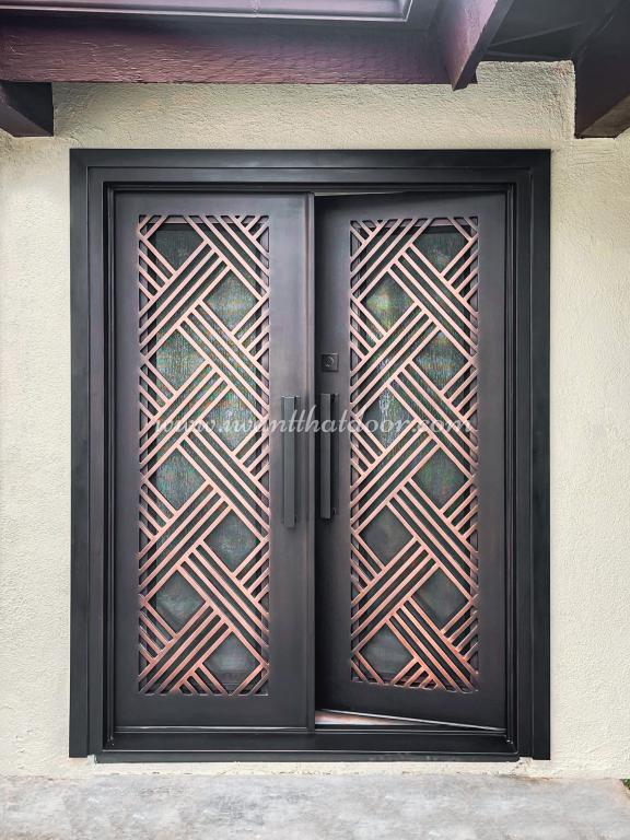 | MACEDONIA LH Wrought Iron Door 72 X 96 LEFT HAND INSWING MEDIUM COPPER Color RAIN Glass STEEL Material PULL HANDLE #006 SQUARE DEADBOLT DOUBLE SQUARE TOP Modern, Contemporary, Art Deco Style Residential, Commercial (Pull Handles and Locks are price separately) | |