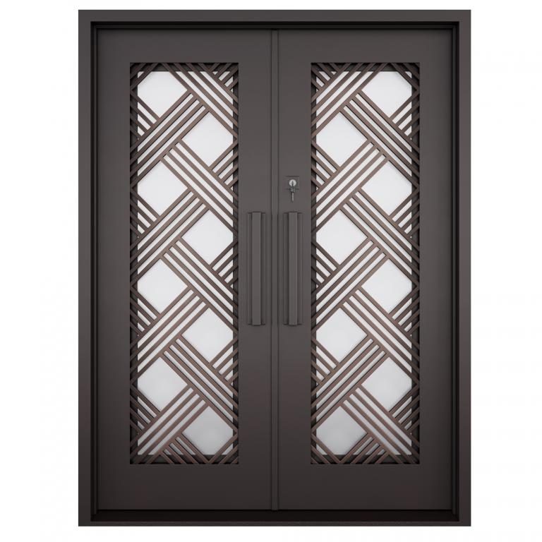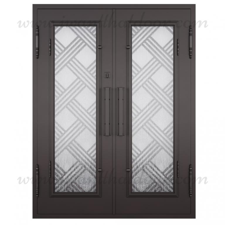 | MACEDONIA RH Wrought Iron Door 61 X 81 RIGHT HAND INSWING MEDIUM COPPER Color RAIN Glass STEEL Material PULL HANDLE #006 SQUARE DEADBOLT DOUBLE SQUARE TOP Modern, Contemporary, Art Deco Style Residential, Commercial (Pull Handles and Locks are price separately) | |