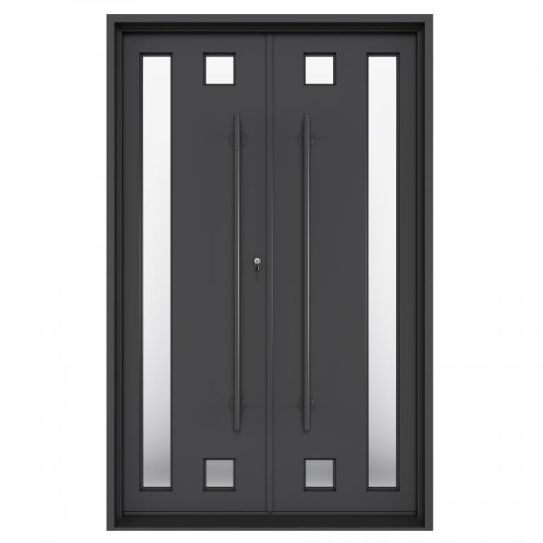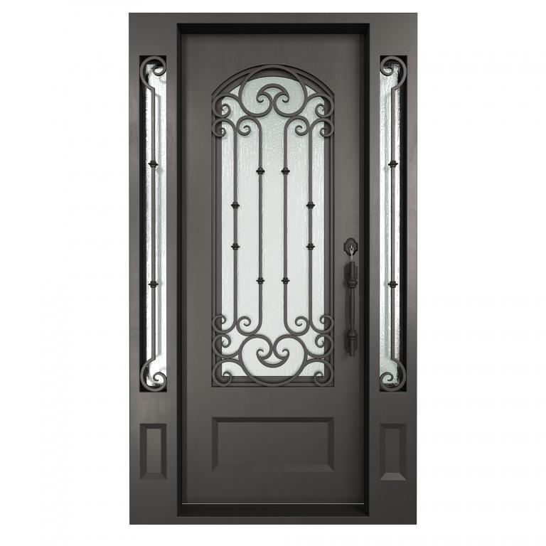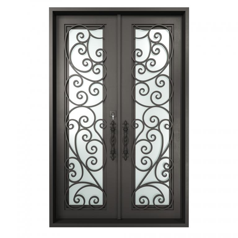 ESSEX RH WROUGHT IRON Style 61 X 96 RIGHT HAND INSWING FLAT BLACK Color RAIN Glass STEEL Material PULL HANDLE #006 SQUARE DEADBOLT 8469 - SINGLE CYLINDER (FLAT BLACK (US19)) DOUBLE SQUARE TOP Modern, Contemporary, Art Deco, Farmhouse, Craftsman, Cape Cod Style Residential, Commercial (Pull Handles and Locks are price separately)