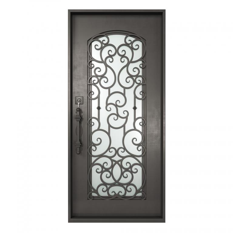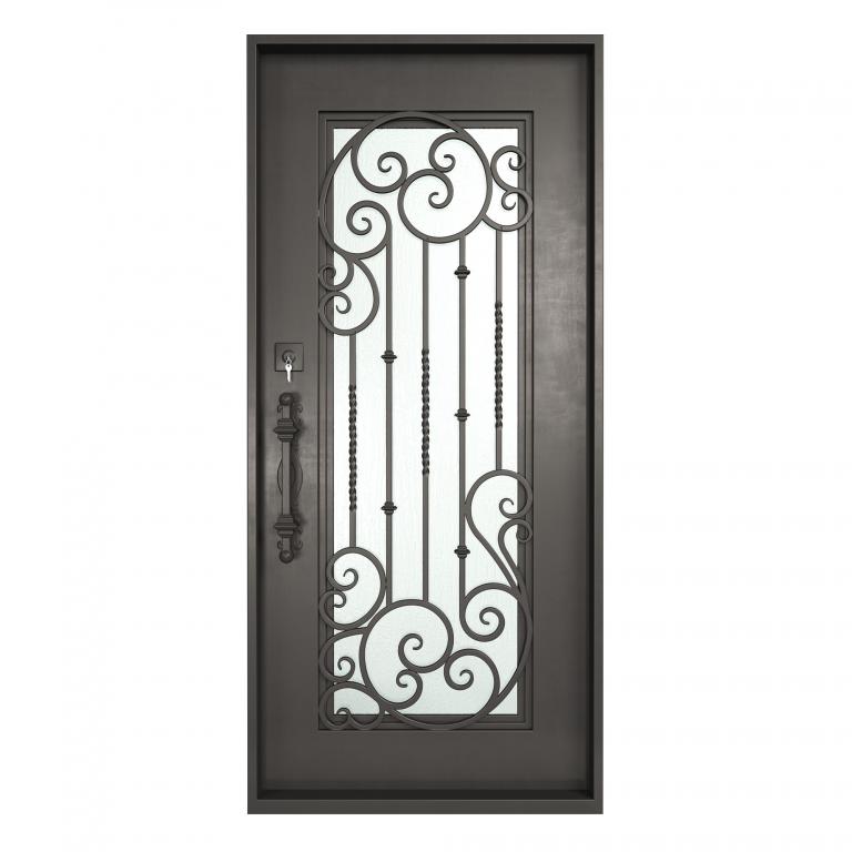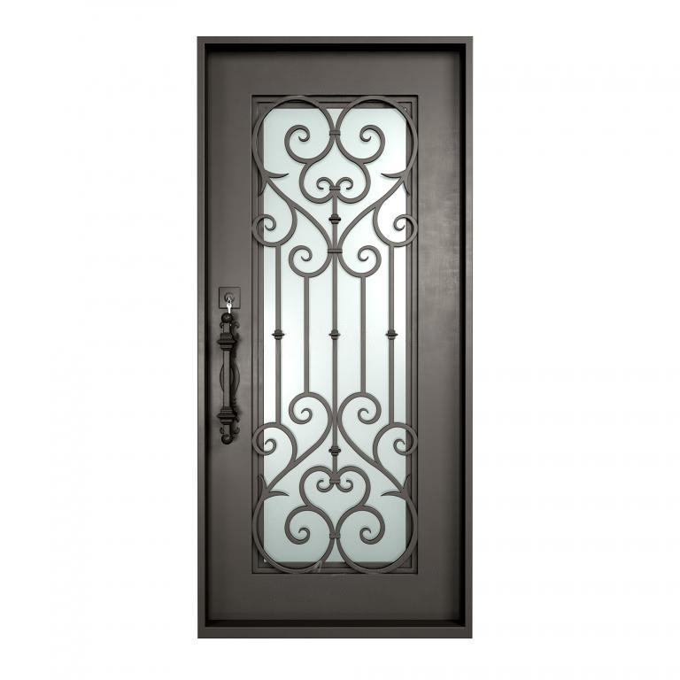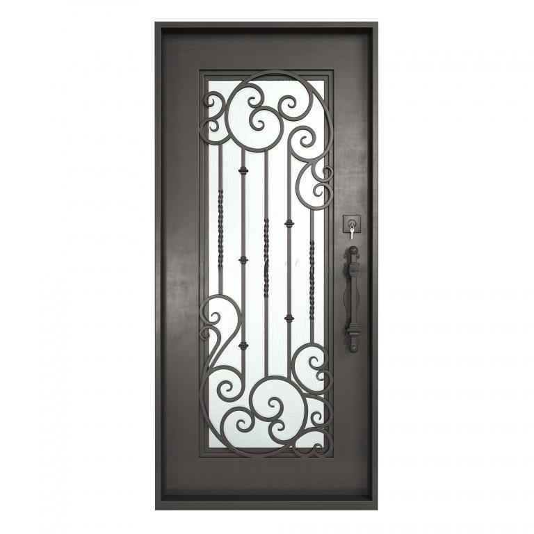 VATICAN RH Wrought Iron Door 37 X 81 RIGHT HAND INSWING MEDIUM COPPER Color SANDBLAST Glass STEEL Material PULL HANDLE #020 SQUARE DEADBOLT SINGLE SQUARE TOP Mediterranean, Spanish, Italianate, Religious Style solid, Residential, Commercial (Pull Handles and Locks are price separately)