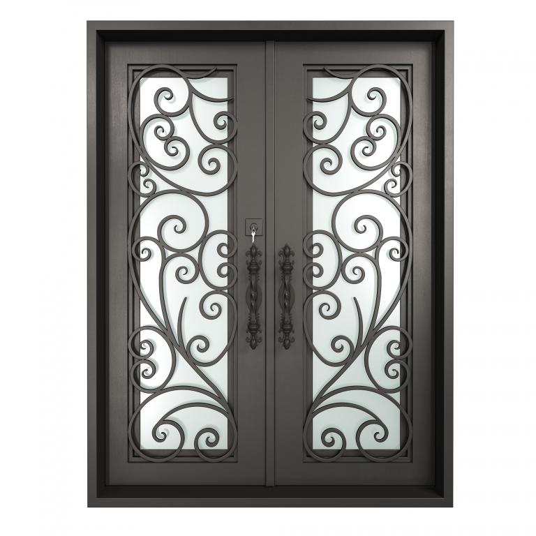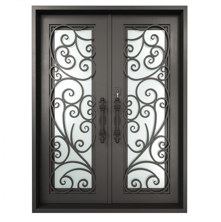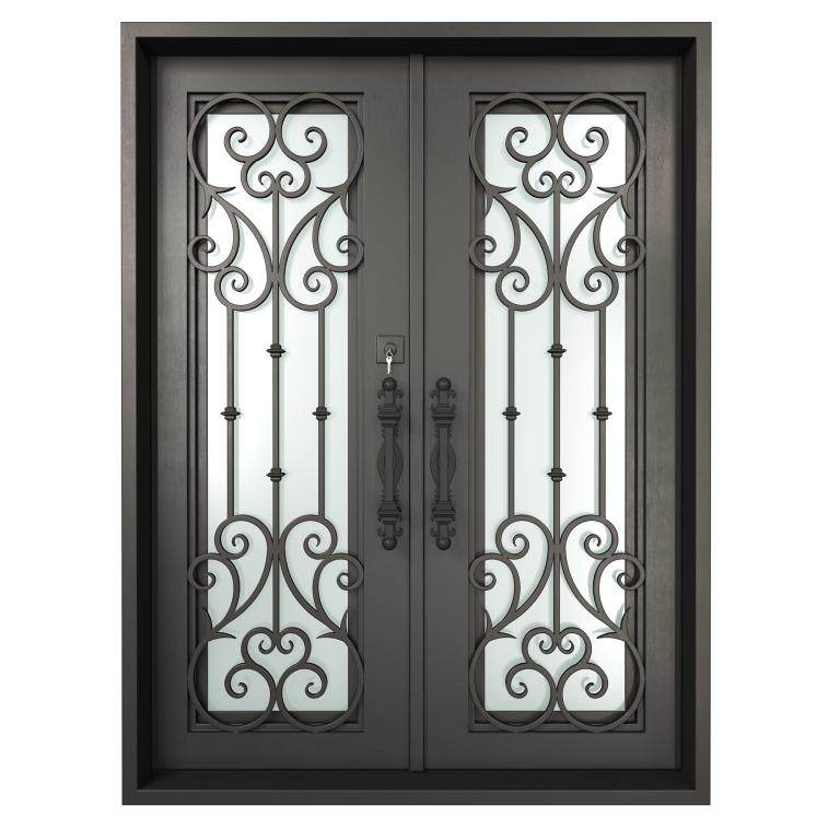 VATICAN LH WROUGHT IRON Style 61 X 81 LEFT HAND INSWING MEDIUM COPPER Color SANDBLAST Glass STEEL Material PULL HANDLE #018 VITO - D107 - BL - S - DOUBLE SQUARE TOP Mediterranean, Spanish, Italianate, Religious Style Residential, Commercial (Pull Handles and Locks are price separately)