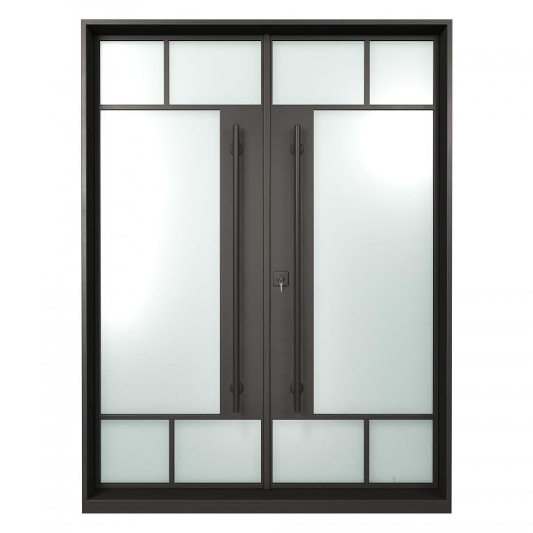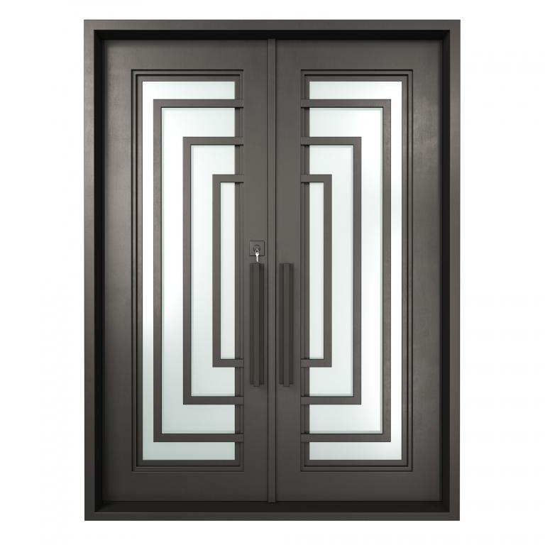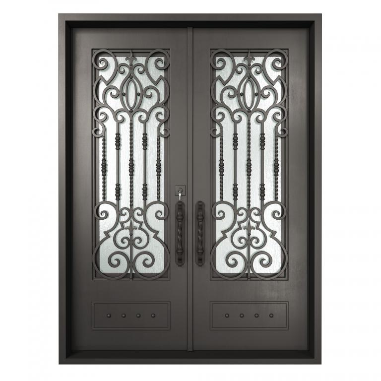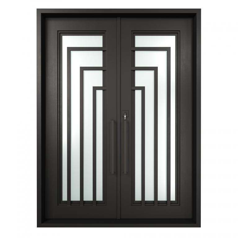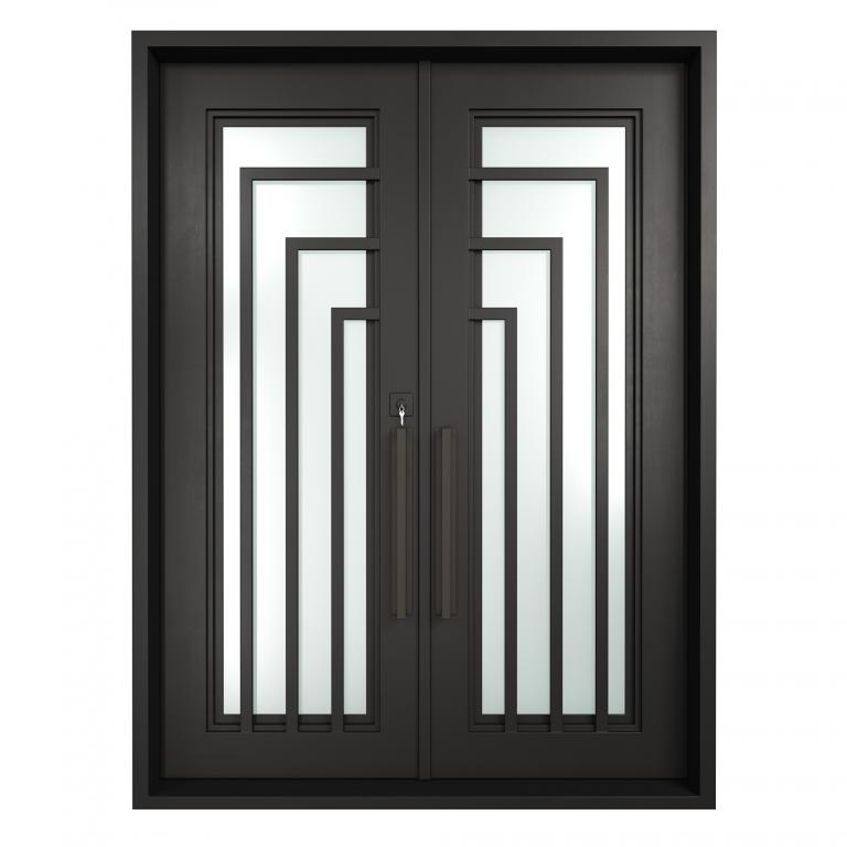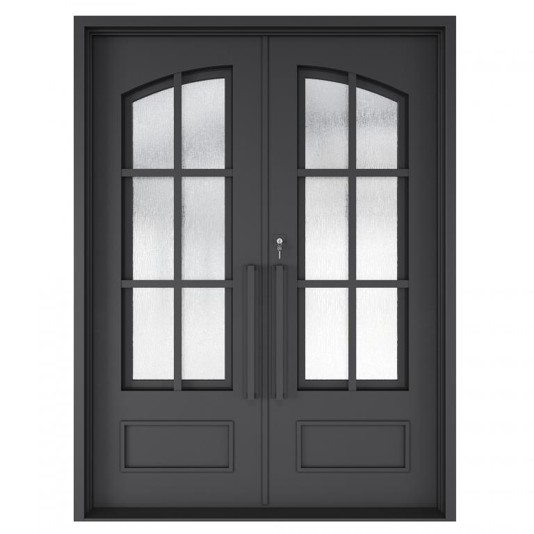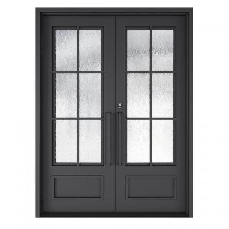 ESSEX RH WROUGHT IRON Style 72 X 96 RIGHT HAND INSWING FLAT BLACK Color RAIN Glass STEEL Material PULL HANDLE #006 SQUARE DEADBOLT 8469 - SINGLE CYLINDER (FLAT BLACK (US19)) DOUBLE SQUARE TOP Modern, Contemporary, Art Deco, Farmhouse, Craftsman, Cape Cod Style Residential, Commercial (Pull Handles and Locks are price separately)