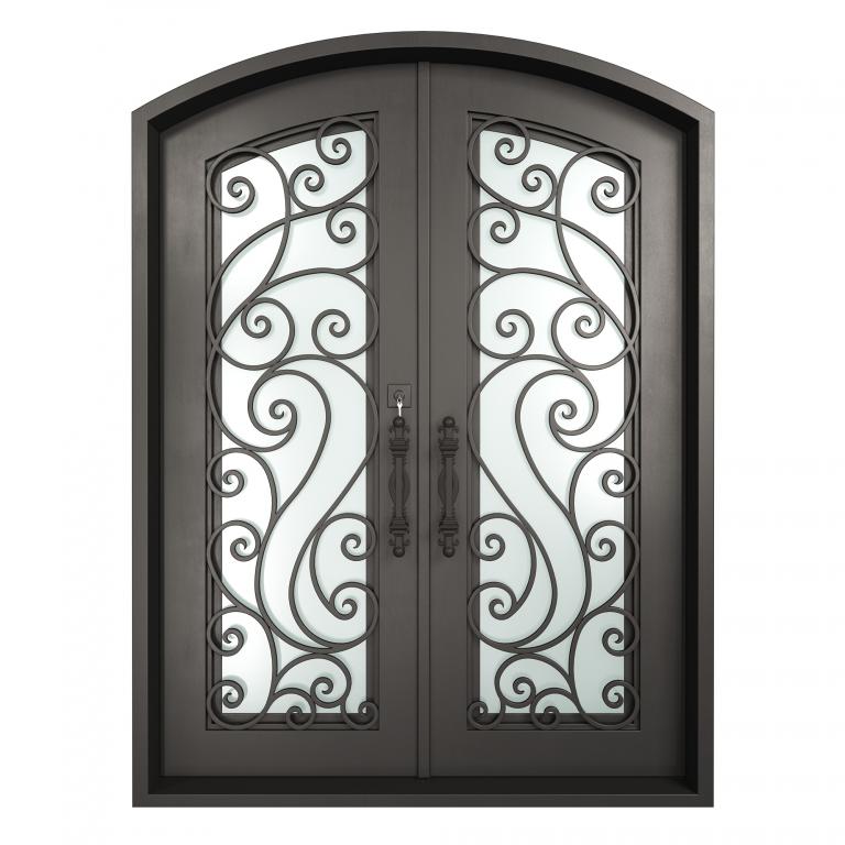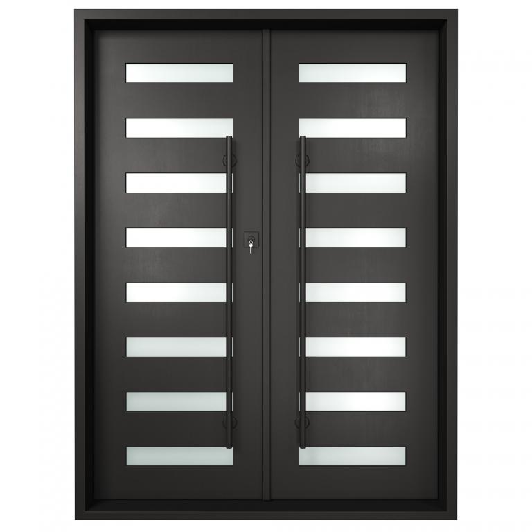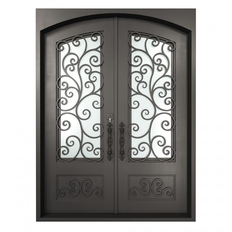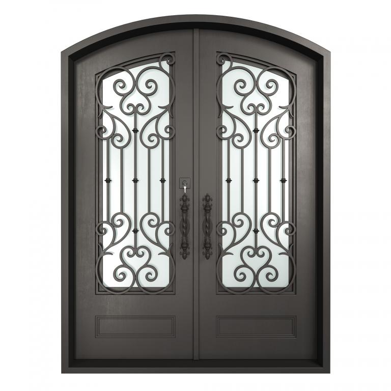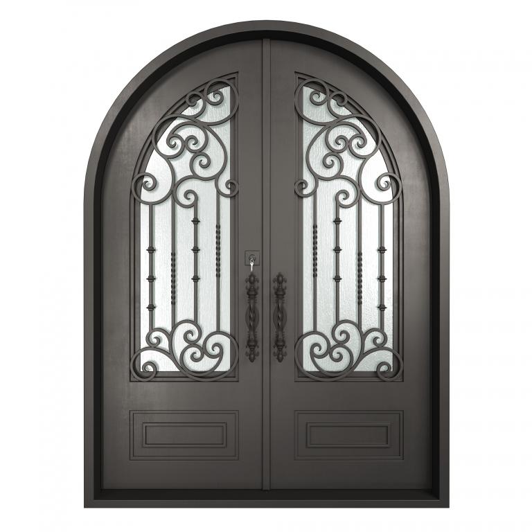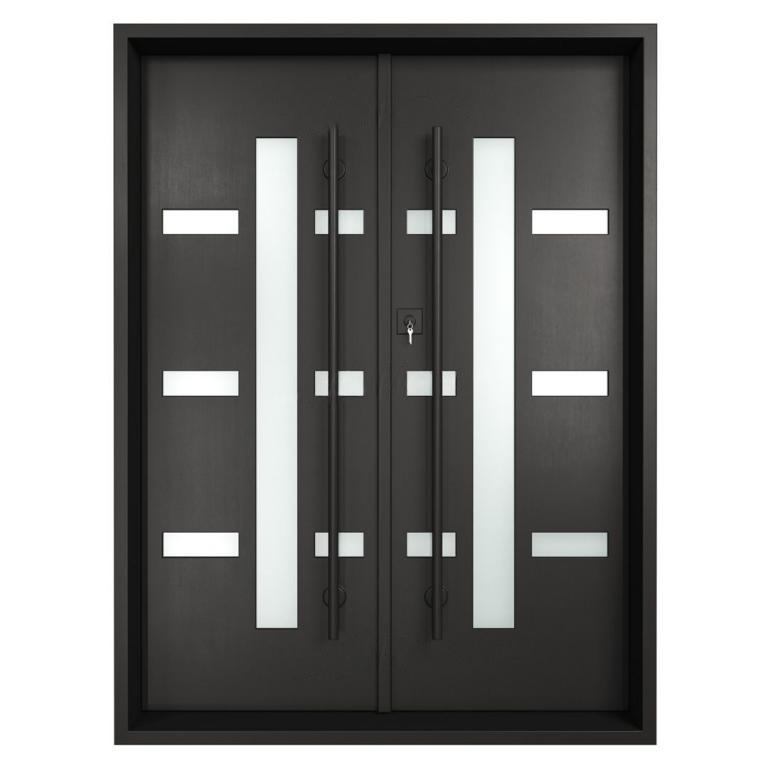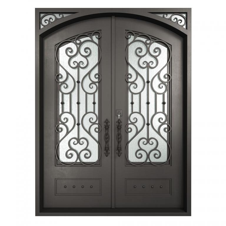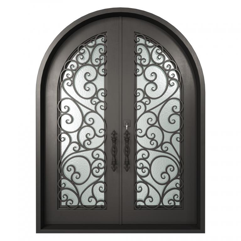 ESSEX RH WROUGHT IRON Style 72 X 96 RIGHT HAND INSWING FLAT BLACK Color RAIN Glass STEEL Material PULL HANDLE #006 SQUARE DEADBOLT 8469 - SINGLE CYLINDER (FLAT BLACK (US19)) DOUBLE SQUARE TOP Modern, Contemporary, Art Deco, Farmhouse, Craftsman, Cape Cod Style Residential, Commercial (Pull Handles and Locks are price separately)