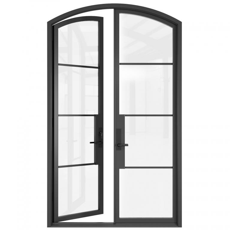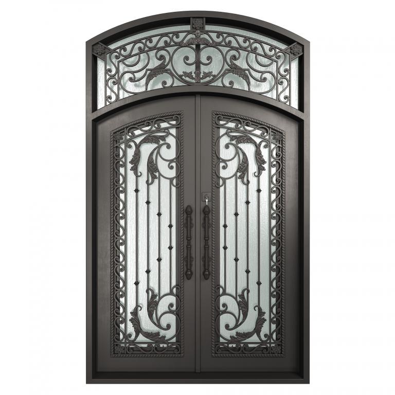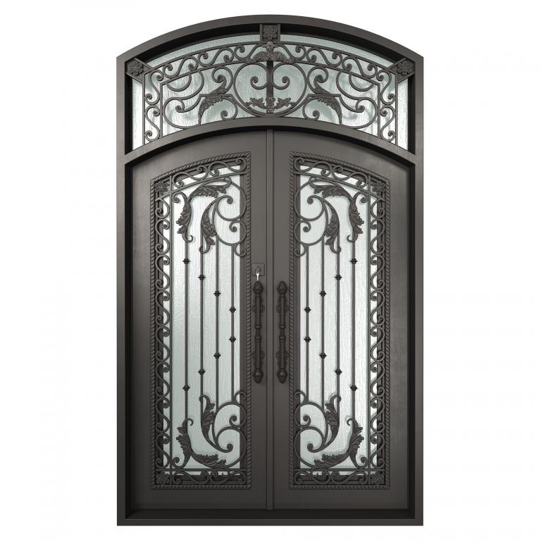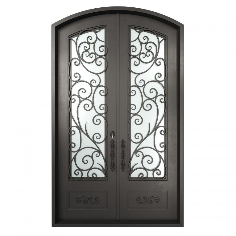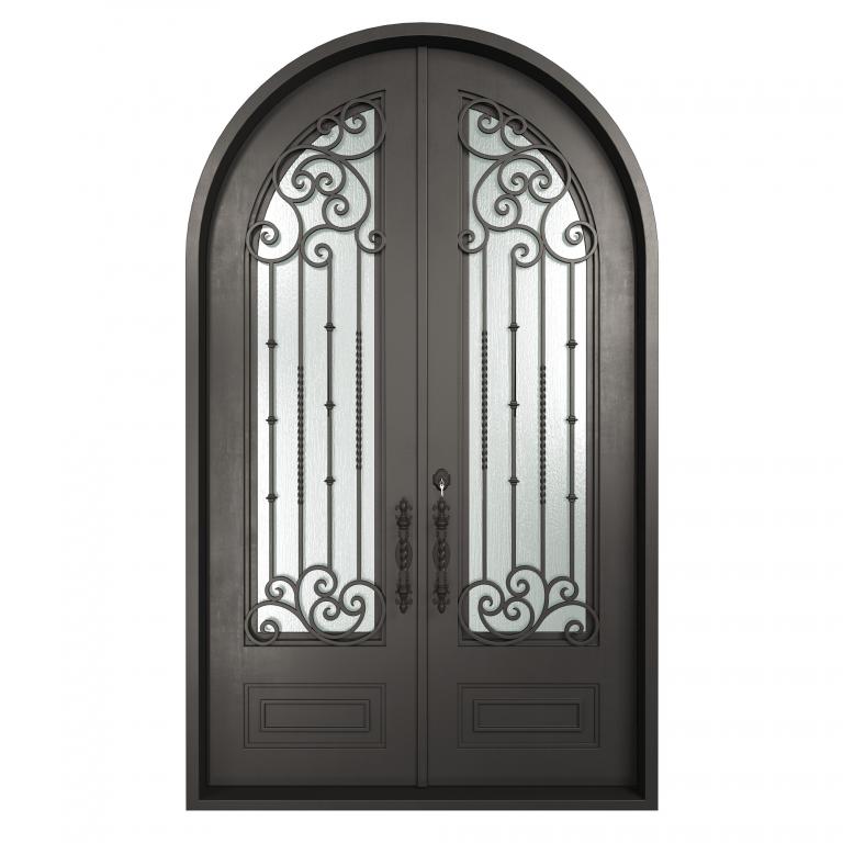 MADRID RH WROUGHT IRON Style 72 X 120 RIGHT HAND INSWING MEDIUM COPPER Color SANDBLAST Glass STEEL Material PULL HANDLE #040 VITO - D107 - BL - S - DOUBLE FULL ROUND Mediterranean, Spanish, Italianate, Religious Style clearance, Residential, Commercial (Pull Handles and Locks are price separately)