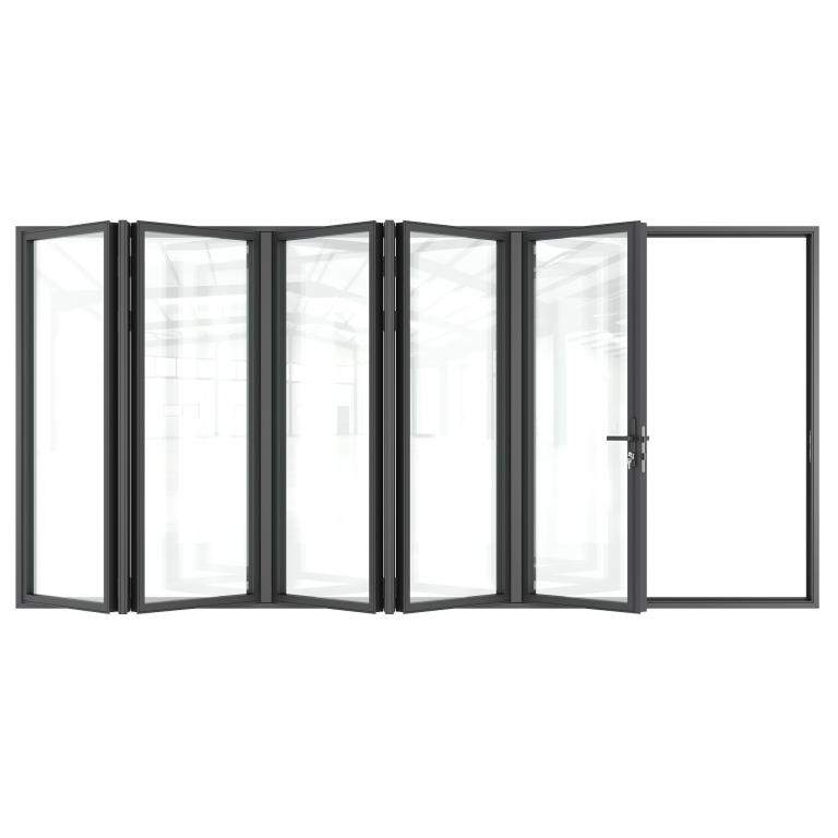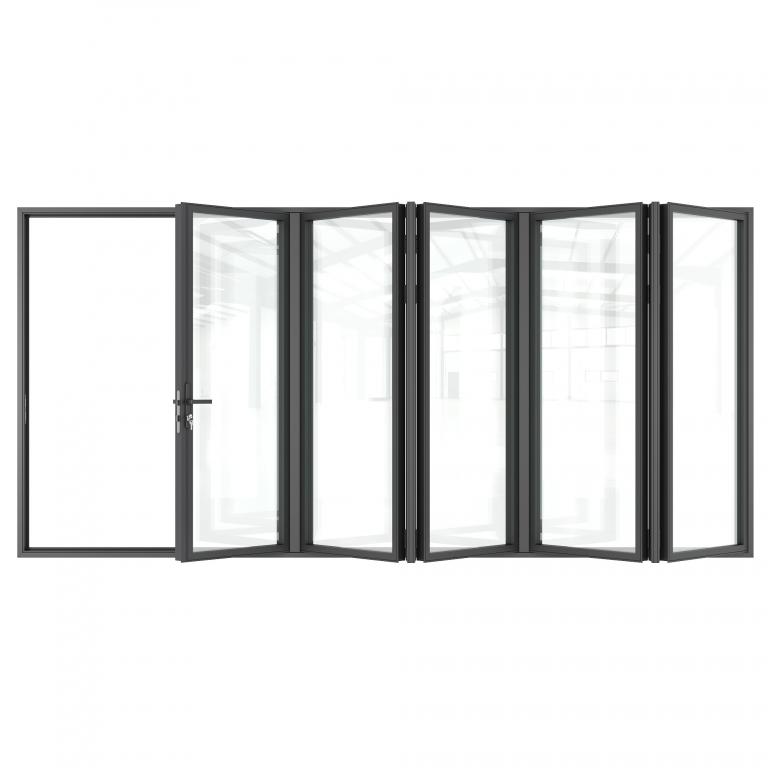 ALUMINUM BI-FOLD FR ALUMINIUM BI-FOLD Style 168 X 80 FOLD RIGHT FLAT BLACK Color LOW-E CLEAR Glass ALUMINUM Material CMECH DOUBLE SQUARE TOP Modern Style Thermal Break (Pull Handles and Locks are price separately)