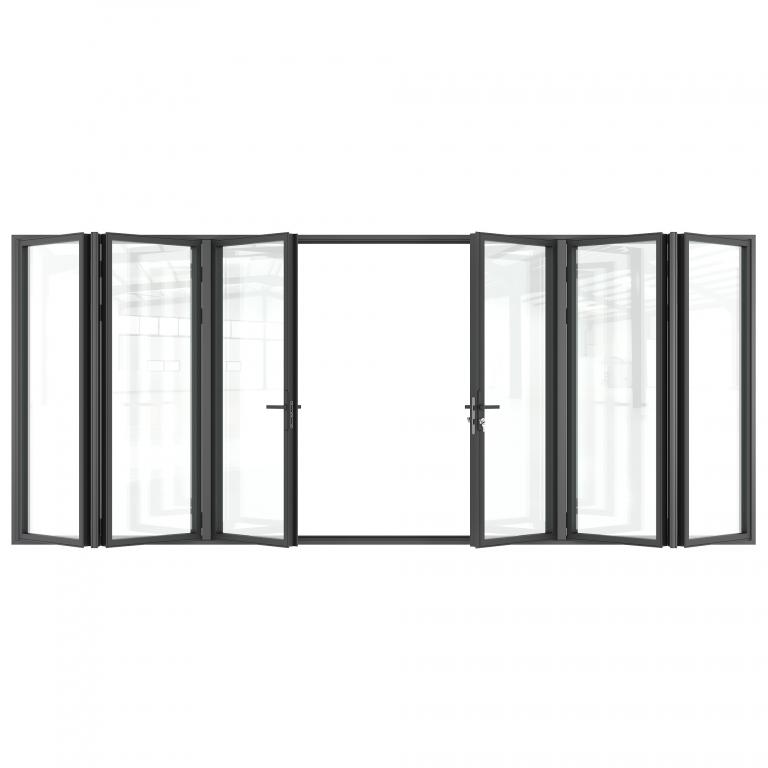ALUMINUM BI-FOLD FM ALUMINIUM BI-FOLD Style 192 X 80 BI-FOLD FLAT BLACK Color LOW-E CLEAR Glass ALUMINUM Material CMECH DOUBLE SQUARE TOP Modern Style thermalBreak (Pull Handles and Locks are price separately)
