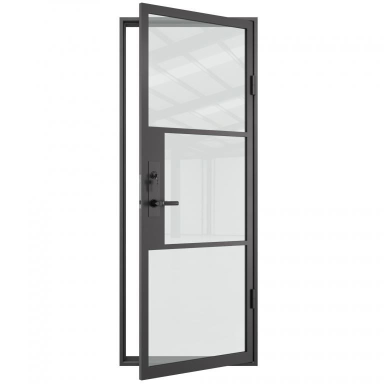 3 PANE FRENCH DOOR LH OUTSWING FRENCH Style 32 X 81 LEFT HAND OUTSWING FLAT BLACK Color CLEAR Glass STEEL Material TANGO - 305A10 - BL - ET - ACTIVE SINGLE SQUARE TOP Modern, Contemporary, Art Deco, Cape Cod Style solid, Residential, Commercial (Pull Handles and Locks are price separately)