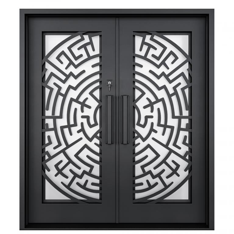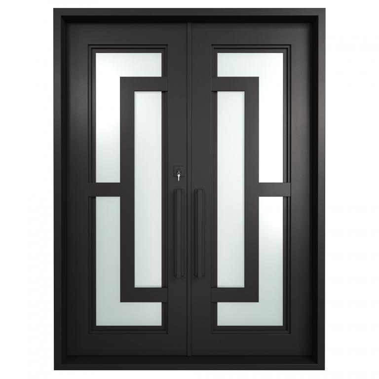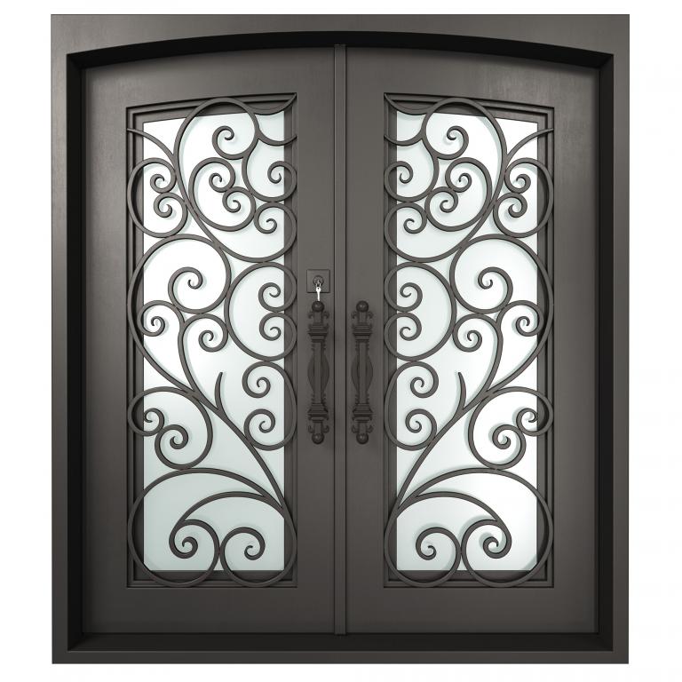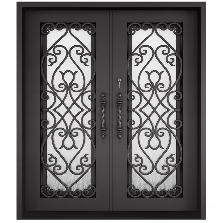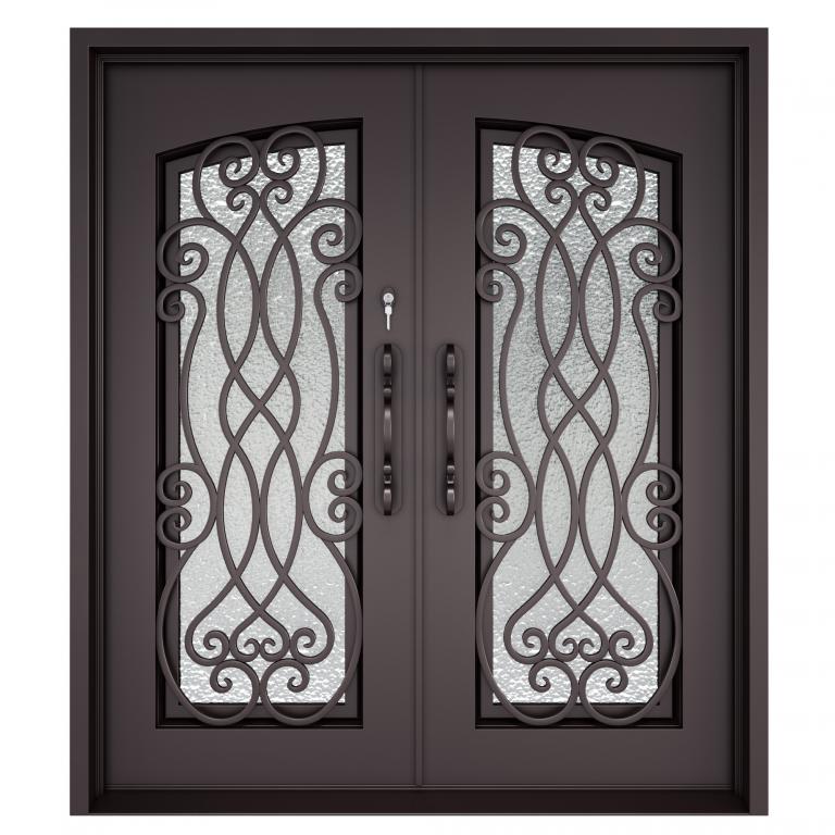 RENAISSANCE RH WROUGHT IRON Style 72 X 81 RIGHT HAND INSWING DARK COPPER Color RAIN Glass STEEL Material PULL HANDLE #019 SQUARE DEADBOLT 8469 - SINGLE CYLINDER (OIL RUBBED BRONZE (US10B)) DOUBLE SQUARE TOP Mediterranean, Spanish, Italianate, Religious Style Residential, Commercial (Pull Handles and Locks are price separately)