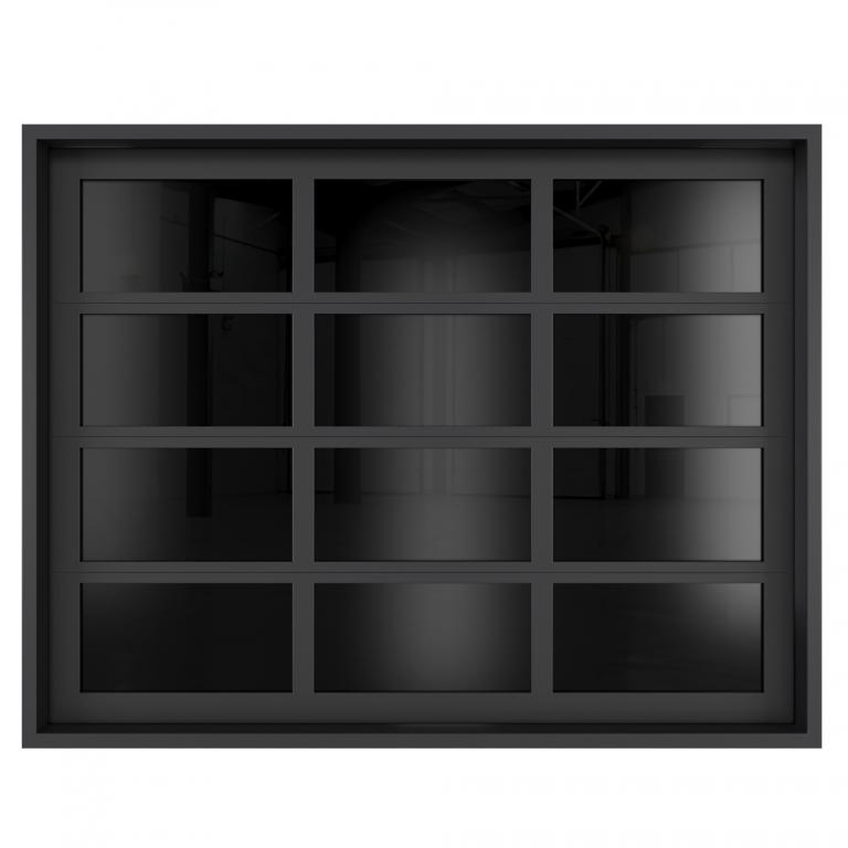 GARAGE DOOR 9X7 108 X 84 SLIDING FLAT BLACK Color BLACK OVER BLACK Glass ALUMINUM Material SQUARE TOP Modern, Contemporary Style