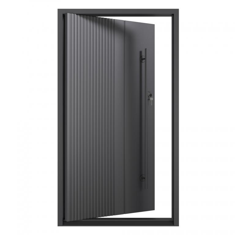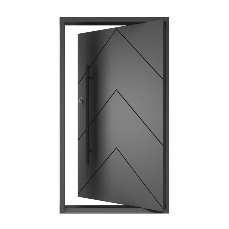 VECTOR PIVOT RH PIVOT Style 48 X 86 RIGHT HAND INSWING MATTE BLACK Color STEEL Material PULL HANDLE #054 FLAT BLACK SQUARE 59" VITO - D107 - BL - S - SINGLE SQUARE TOP Modern, Contemporary Style (Pull Handles and Locks are price separately)