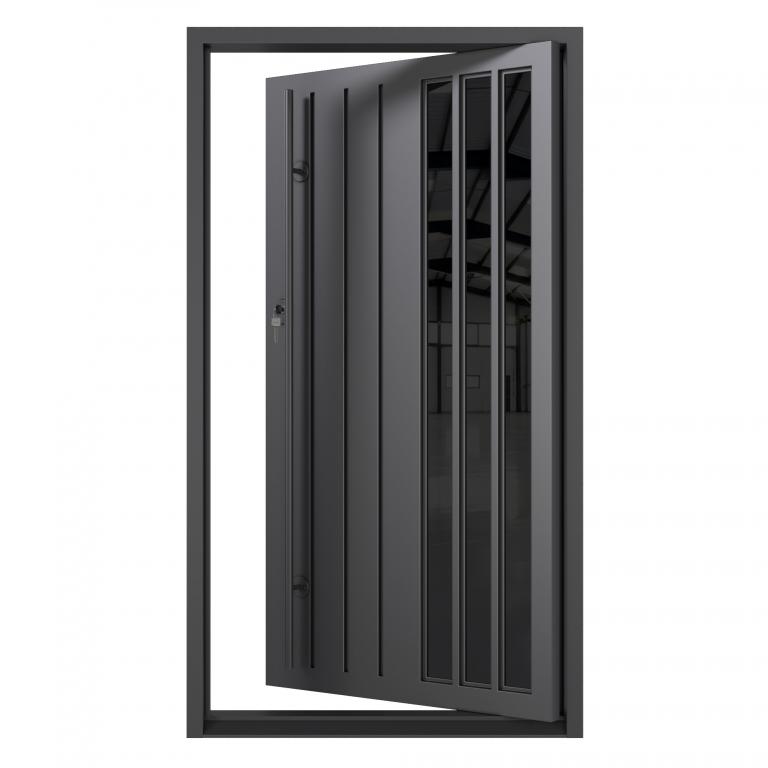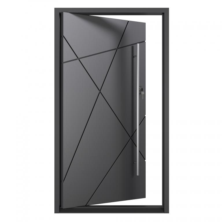Matrix PIVOT LH PIVOT Style 48 X 86 LEFT HAND INSWING MATTE BLACK Color STEEL Material PULL HANDLE #059 BRUSHED ALUMINUM ROUND 70" VITO - D107 - BL - S - SINGLE SQUARE TOP Modern, Contemporary, Art Deco Style (Pull Handles and Locks are price separately)