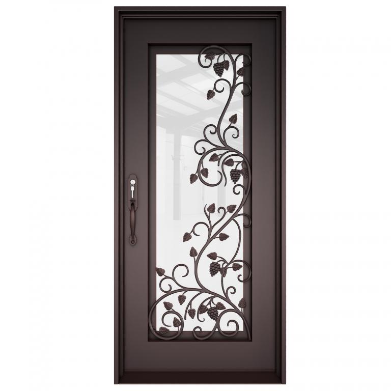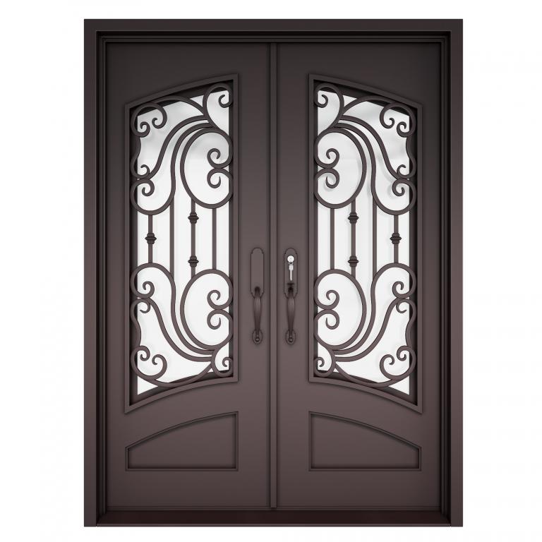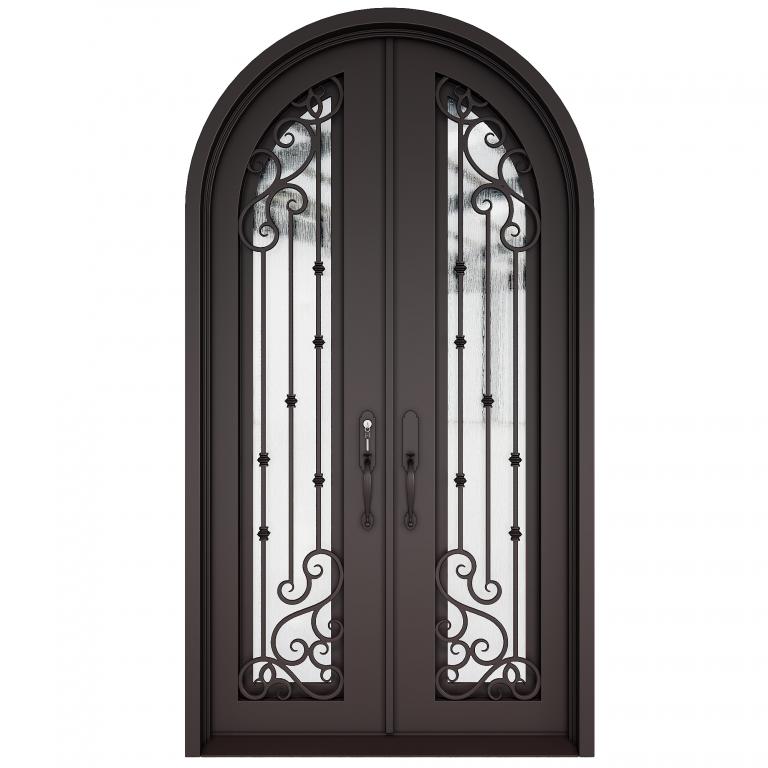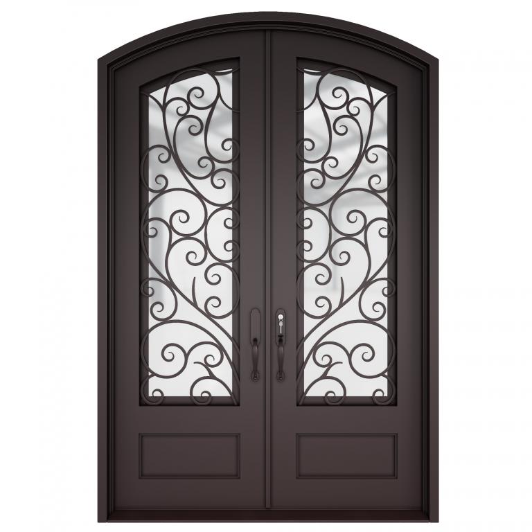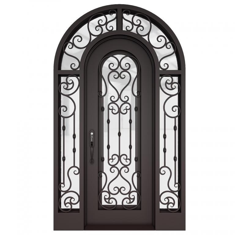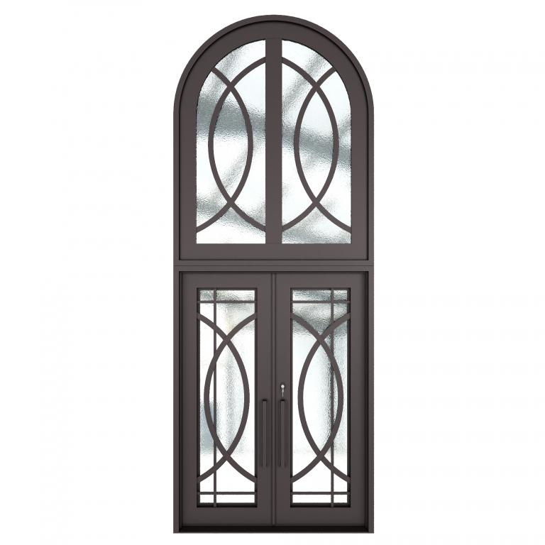 CUSTOM MADERA WITH TRANSOM RH #R WROUGHT IRON Style 72 X 186 RIGHT HAND INSWING DARK COPPER Color FLEMISH Glass STEEL Material PULL HANDLE #006 VITO - D107 - BL - S - DOUBLE FULL ROUND Modern, Contemporary Style wTransom, special, clearance (Pull Handles and Locks are price separately)