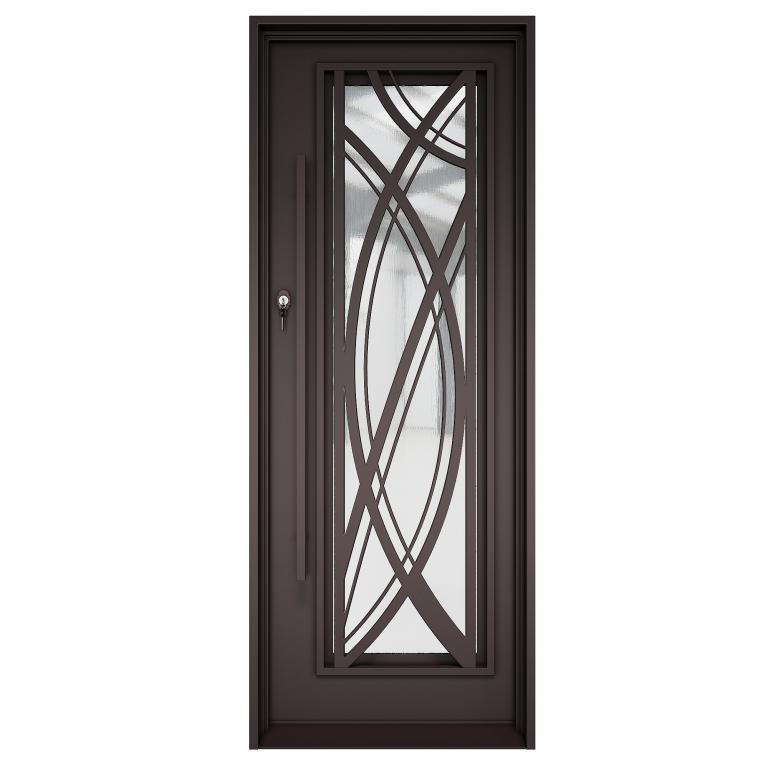 CUSTOM #1042 PK134 WROUGHT IRON Style 31 X 80 RIGHT HAND INSWING MEDIUM BRUSHED COPPER (05) Color RAIN + CLEAR Glass VITO - D107 - ORB -S - SQUARE TOP wScreen (Pull Handles and Locks are price separately)
