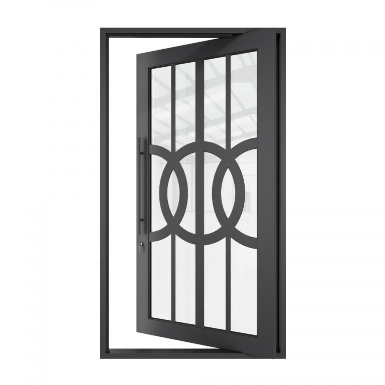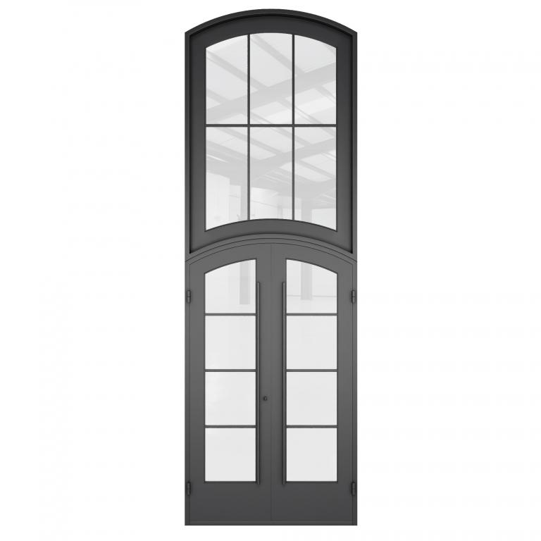 CUSTOM #1064 PK159 WROUGHT IRON Style 72 X 216 RIGHT HAND INSWING MATTE BLACK (01) Color GREY TINT + LOW-E Glass VITO - D107 - BL - S - EYEBROW TOP (Pull Handles and Locks are price separately)