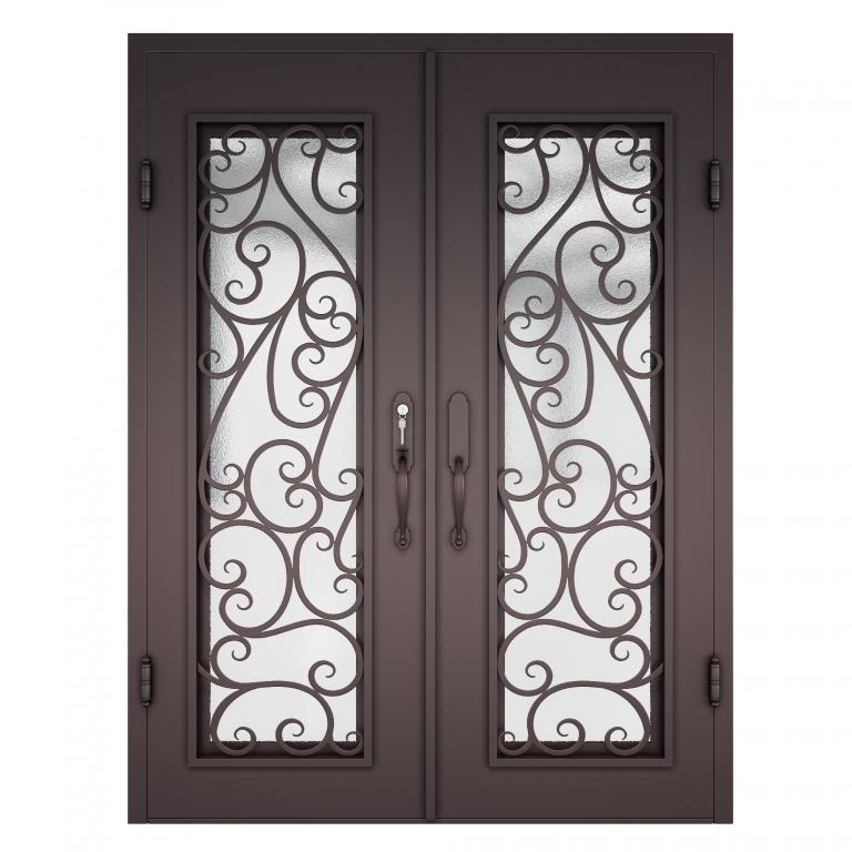 CUSTOM #1076 PK173 WROUGHT IRON Style 43 X 80 RIGHT HAND INSWING DARK COPPER Color SANDBLAST + CLEAR Glass ROCCO - 9601-ORB- ET - ACTIVE DOUBLE SQUARE TOP (Pull Handles and Locks are price separately)