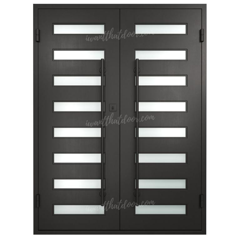 | THE BEAST 3 RH WROUGHT IRON Style 72 X 96 RIGHT HAND INSWING FLAT BLACK Color SANDBLAST Glass STEEL Material PULL HANDLE #036 SQUARE DEADBOLT DOUBLE SQUARE TOP Modern, Contemporary, Art Deco Style Residential, Commercial (Pull Handles and Locks are price separately) | |